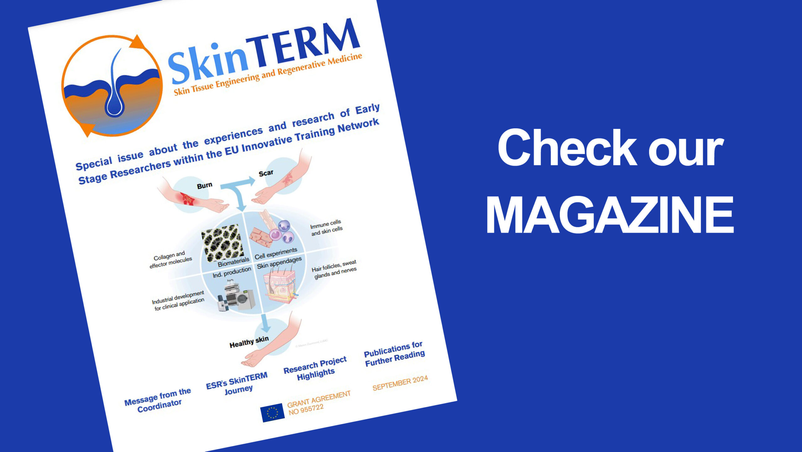 SkinTERM stands for Skin Tissue Engineering and Regenerative Medicine and aims to convert the normal mode of skin repair into skin regeneration by delivering excellently and multidisciplinary trained scientists able to take this research area to the next level. Today’s standard treatment of skin burns and large trauma is transplantation of autologous split-thickness skin. This carries a number of serious drawbacks, including pain, mobility-limiting contractures and disfiguring scars. SkinTERM aims to address wound healing in a completely different way, recapitulating regeneration rather than repair. Skin organogenesis will be induced by key elements taken from the extracellular matrix of foetal skin and the skin of species that exhibit no scarring in the regeneration process, and by employing (stem) cells from relevant cellular origins.